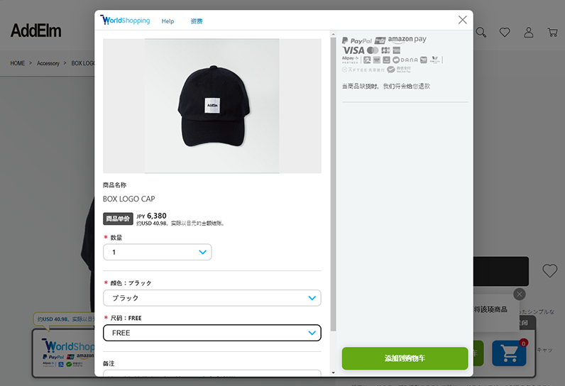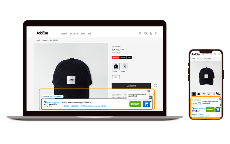点击“添加到购物车”的“WorldShopping旗帜广告,只有在您国家可以购买的商品才会出现在购物车中,继续购买您喜欢的商品。