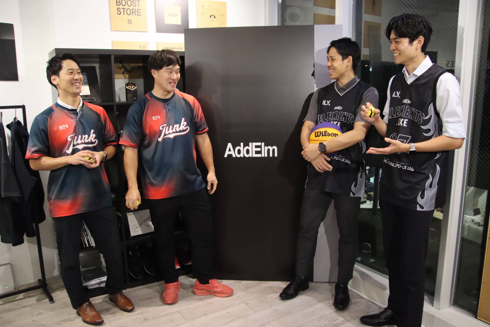 AddElm TECHNOLOGY株式会社代表取締役社長 藤﨑 大、ADDELM ELEMENTS.EXE 黒木瑛介選手、杉山 碧選手