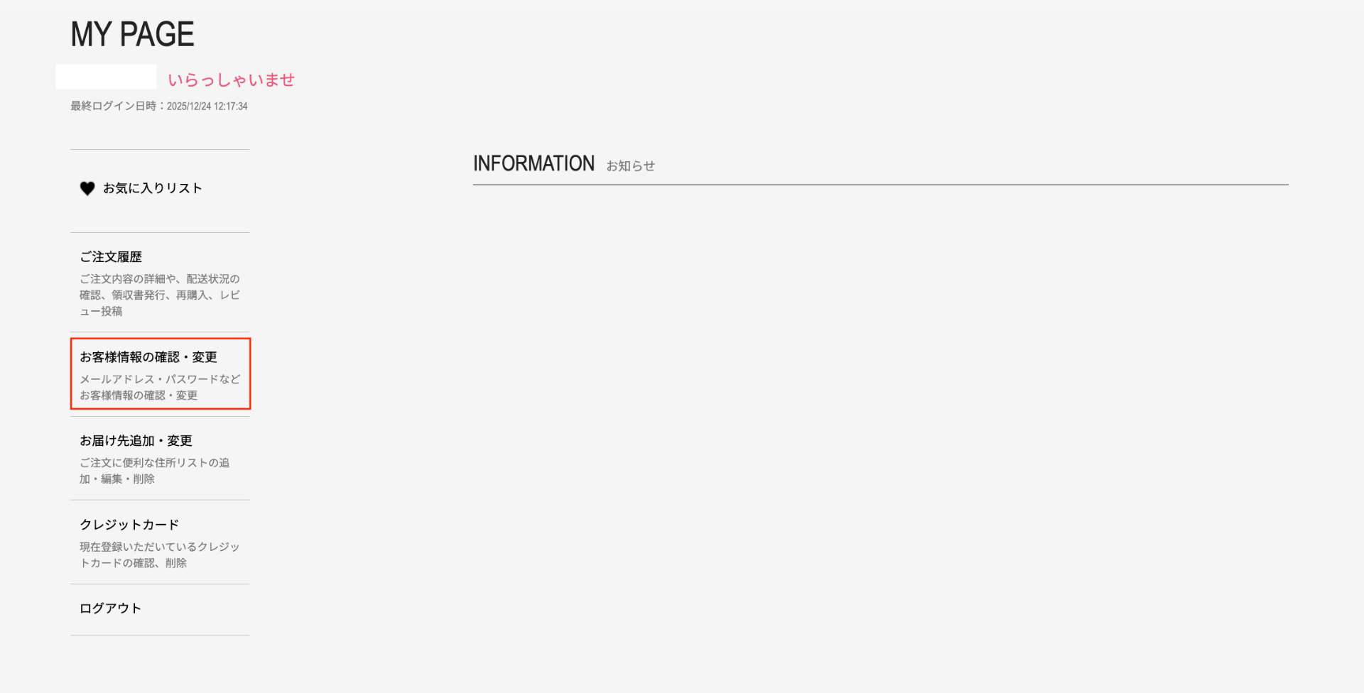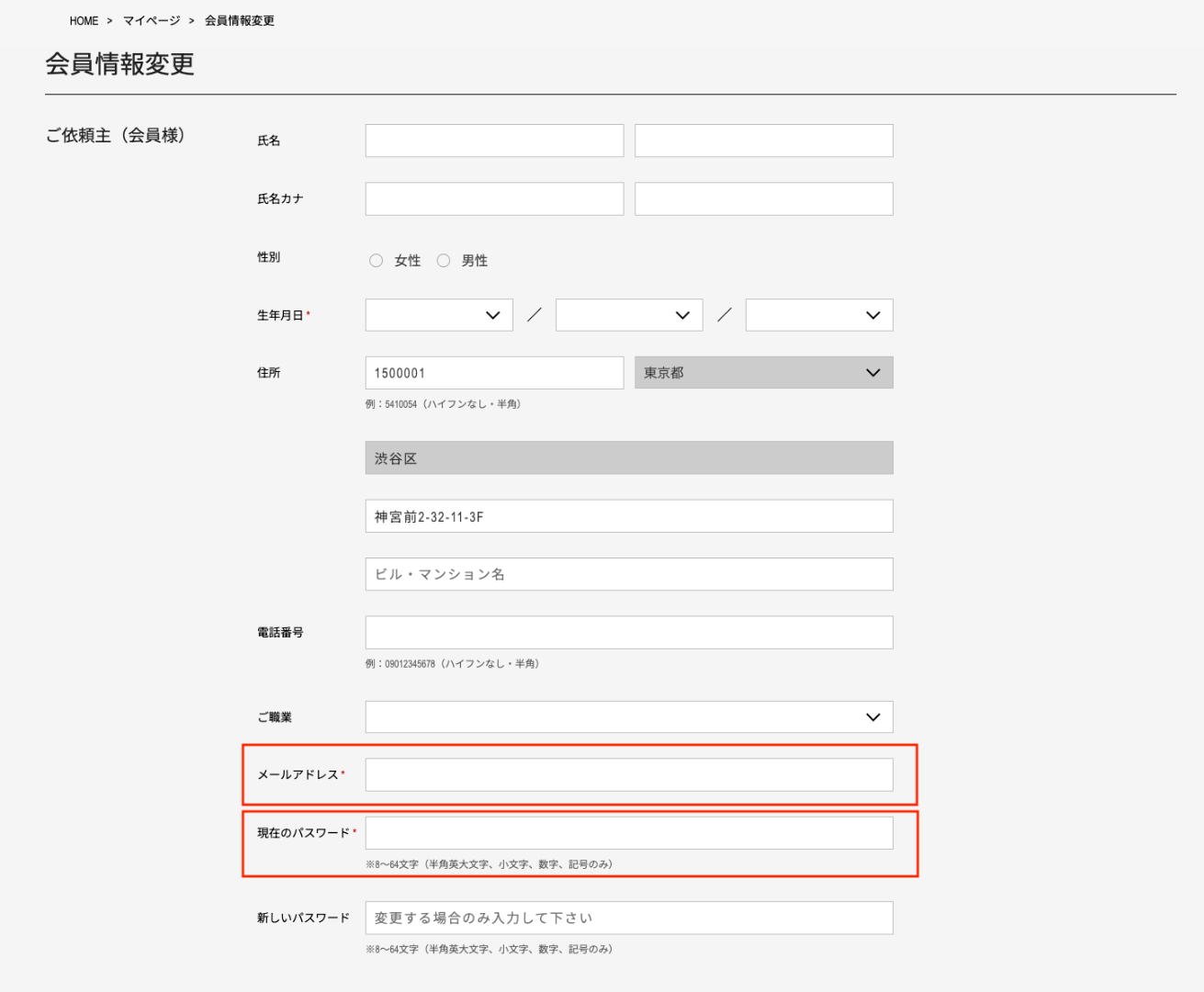 ④「会員情報変更」内メールアドレスを新しいものに変更する